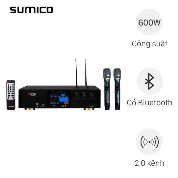 Âm Ly Sumico SU2250 - Trải nghiệm âm thanh chất lượng cao với công suất 2250W. Thiết kế hiện đại, kết nối linh hoạt qua Bluetooth, USB, AUX. Mua ngay để thưởng thức âm nhạc sống động và chi tiết nhất!