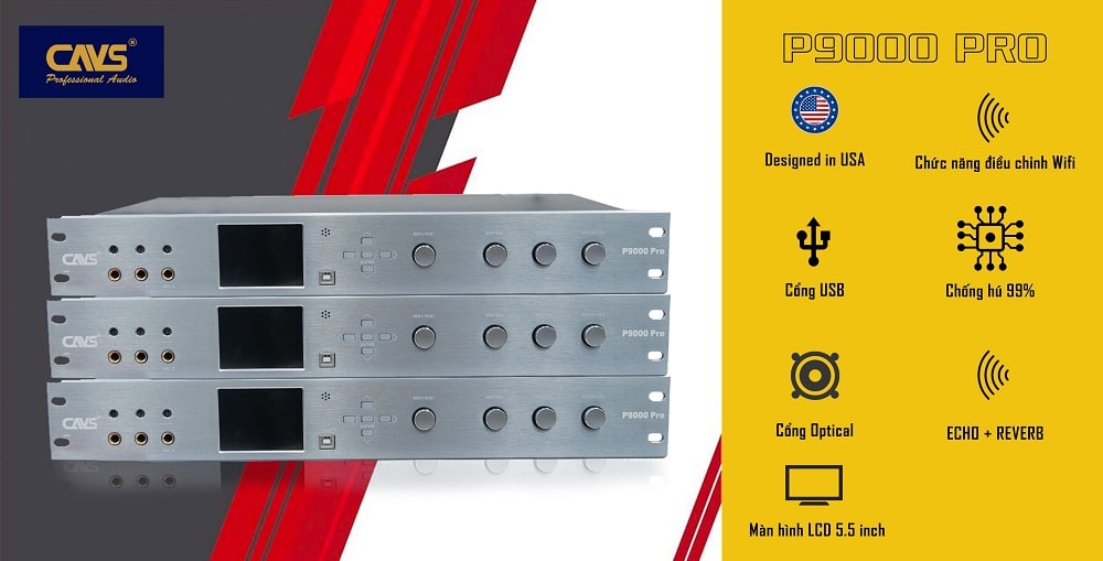 - Mixer CAVS P9000: Vang số hiện đại, nhiều tính năng, xử lý âm thanh chuyên nghiệp.