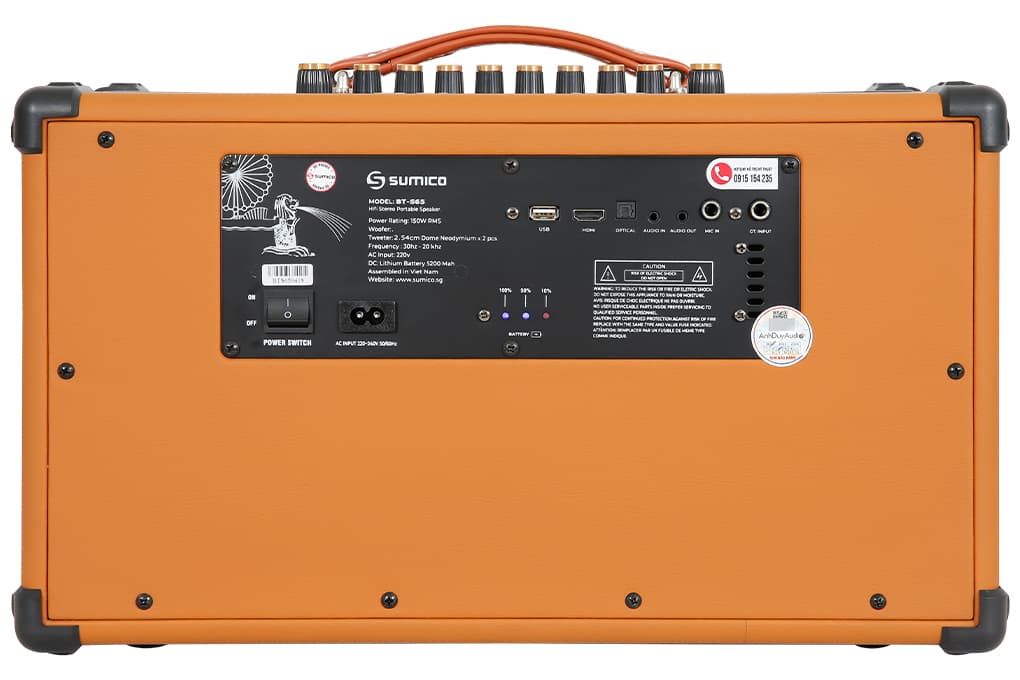 Loa Sumico BT-S65 kết hợp thiết kế hoài cổ và công nghệ âm thanh hiện đại, mang đến trải nghiệm âm thanh trung thực và chi tiết. Với công suất 150W, thời lượng pin lên đến 8 giờ, và trang bị 4 củ loa chất lượng cao, Sumico BT-S65 lý tưởng cho mọi nhu cầu giải trí từ nghe nhạc, xem phim, đến hát karaoke. Kết nối đa dạng Bluetooth 5.0, USB, Optical, HDMI (ARC) và tích hợp 2 micro không dây chất lượng cao, Sumico BT-S65 là lựa chọn hoàn hảo cho cả không gian trong nhà và ngoài trời.