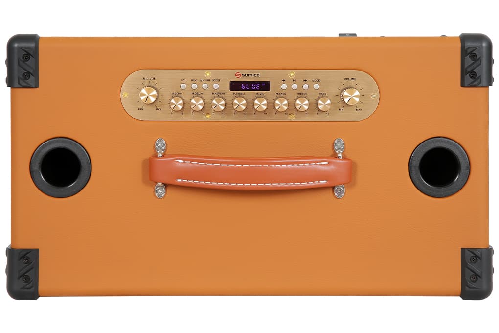 Sumico BT-S65 có thiết kế hoài cổ với tay xách bọc da nhám êm ái, giúp thoải mái cầm nắm khi di chuyển. Vỏ thùng bọc da cao cấp màu Cam Nâu kết hợp tinh tế cùng màu Vàng Đồng của các nút chỉnh âm thanh và bảng ghi chú, mang lại vẻ ngoài sang trọng. Mặt lưới bằng chất liệu sợi tinh chế màu Đen, Nâu đan xen, tạo hiệu ứng bắt mắt và bảo vệ loa con bên trong mà vẫn đảm bảo đặc tính âm học. Thiết kế này giúp Sumico BT-S65 luôn giữ được nét đẹp và sự bền bỉ qua thời gian.